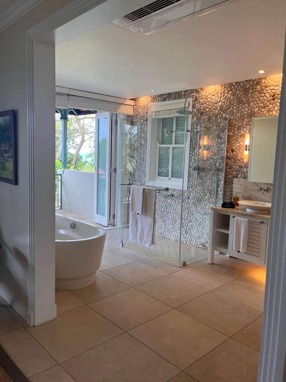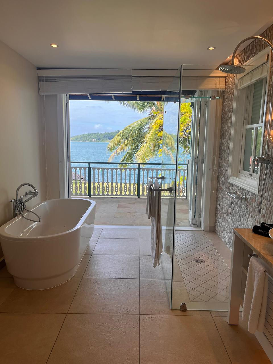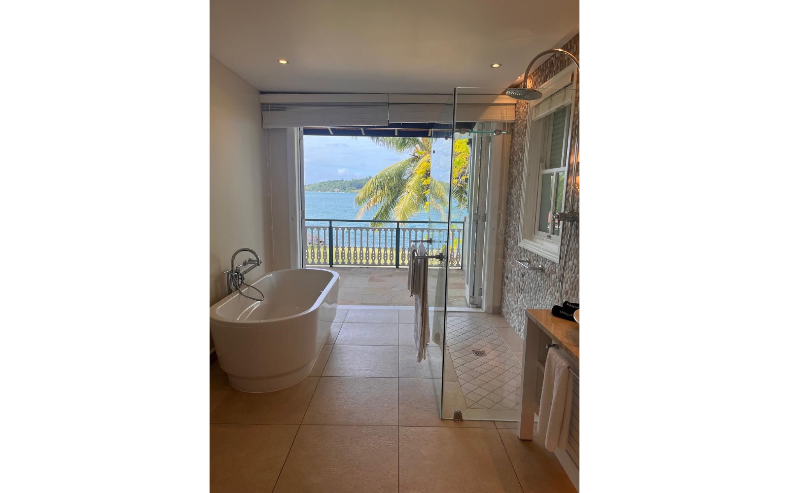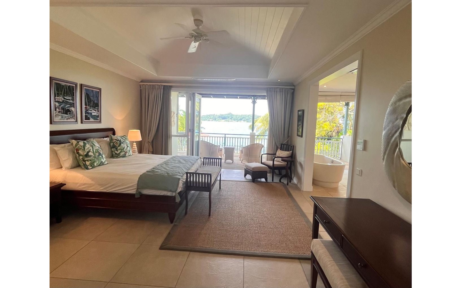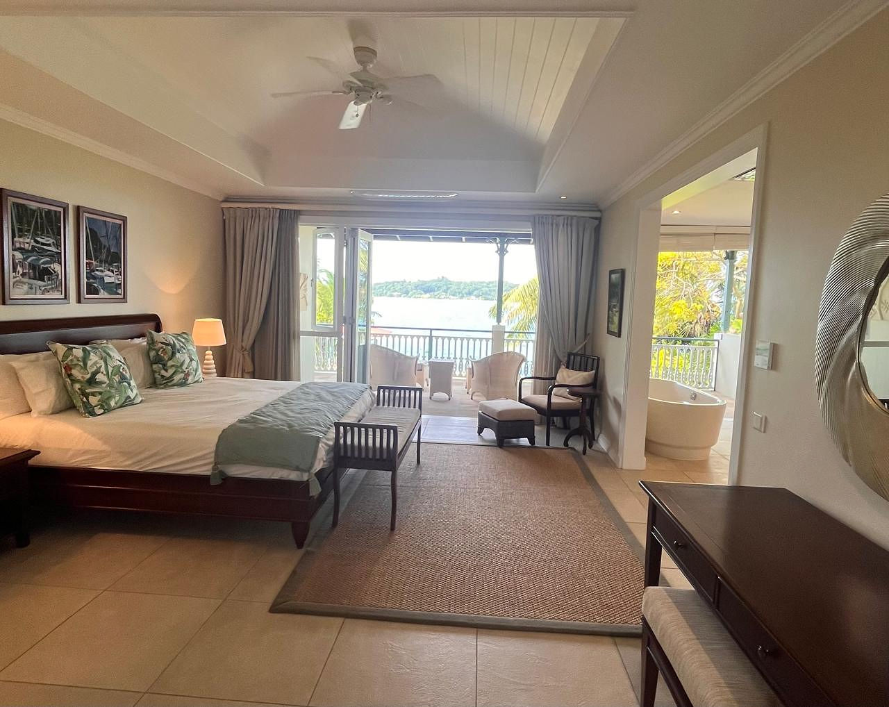 An expansive sanctuary featuring a king-size bed, private balcony with sweeping views of the marina; a spacious en-suite bathroom with dual vanities, soaking tub, and walk-in shower—designed for ultimate relaxation. Please note this room is located on an upper floor.